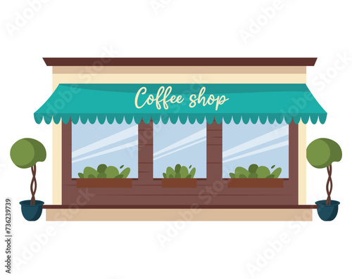 Coffee shop of colorful set. This image captures the essence of a coffee shop facade in a fun and lively cartoon style, adding vibrancy to any setting against a white background. Vector illustration.