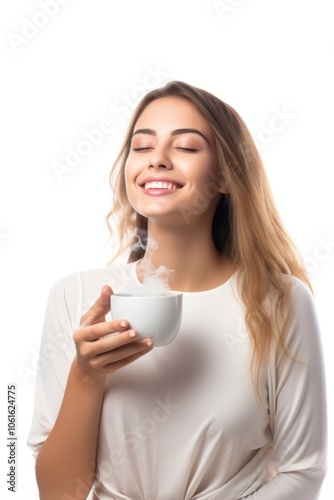 hot drink, smile, drink, coffee cup, mug, woman, person, portrait, white, hand, teacup, adult, peace, face, tea, happy, human, teeth, photo, calm, head, cup, relaxation, smelling, happiness, positive, cut-out, aroma, young, image, looking up, coffee break, young adult, copy space, coiffure, hot drink, long hair, beverage, cheerful, head shot, isolated, holding, looking, sitting, sleeve
