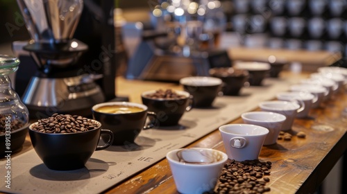 hot drink, tasting, bean, cup, favor, chocolate, nut, berry, brewing, equipment, table, sensory, life events, aroma, espresso, latte, cappuccino, drink, epicure, barista, preparation, variety, selection, rich, roasted, ground, fresh, hot, caffeinated, beverage, setup, arrangement, ambience, background, blur, favor, robust, aromatic, premium