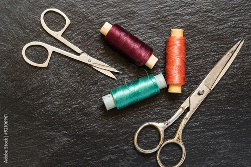 sewing, needlecraft, thread, hand-made, handiwork, accessory, aged, blade, bobbin, bright, coil, colours, colourful, craft, craftsmanship, cut, detail, dressmaking, equipment, fiber, glittering, green, group, grimy, hobby, instrument, material, object, old, orange, purple, reel, repair, retro, scratch, sew, sharp, shining, silk, spool, steel, supply, tailor, texture, tool, vintage, work, threaded, background