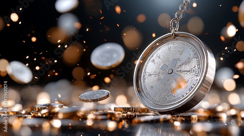 coin, coin, falling, hovering, silver, metallic, ring, hanging, metal, currency, money, finance, investment, wealth, economy, banking, business, financial, concept, abstract, isolated, background, black, dark, bokeh, sparkle, detail, macro, studio shot, illustration, digital, design, symbol, trading, asset