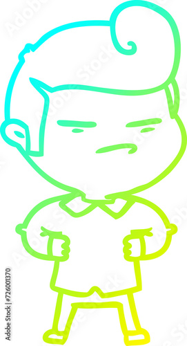cold gradient line drawing cartoon cool guy with fashion hair cut