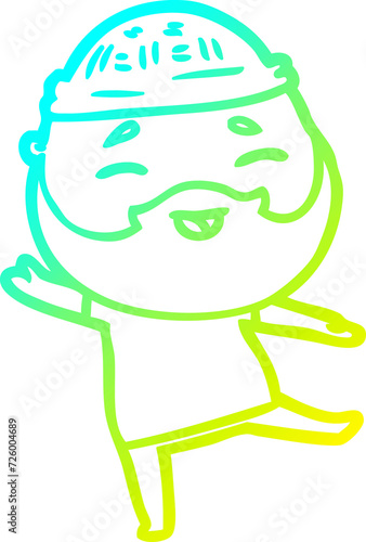 cold gradient line drawing cartoon happy bearded man