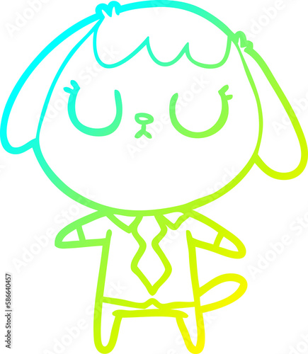cold gradient line drawing cute cartoon dog wearing office shirt
