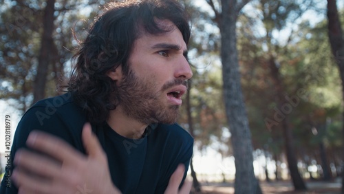 cold, man, warm, up, rubbing, himself, winter, under, tree, mountain, heat, nature, outdoors, survival, coldness, warmth, relaxation, scenery, solitude