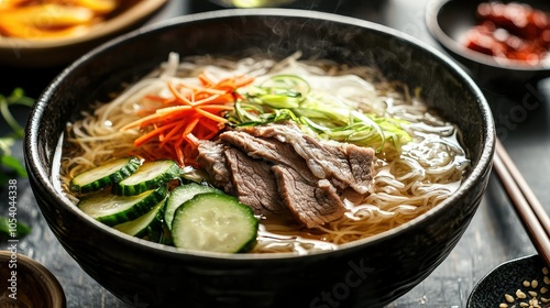 cold, noodle, bowl, delicious, garnished, cucumber, carrot, beef, broth, asian, meal, food, cookery, fresh, herb, appetiser, lunch, dinner, eatery, culinary, epicure, tasty, ingredient, traditional, presentation, stylish, served, healthy, vibrant, steam, dish, garnish, kitchen, cook, favor, preparation, comforting, delicacy, summer, chilled, eating, utensil, enjoyment, visual, bright, colourful, savoury