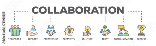 Collaboration banner web icon illustration concept with icon of teamwork, support, partnership, creativity, solution, trust, communication, success