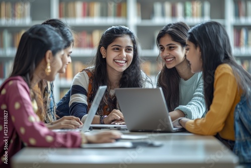 Collaborative study session among friends library group activity indoor close-up learning together