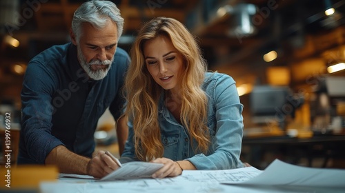 Collaborative Teamwork: Architects Reviewing Blueprints