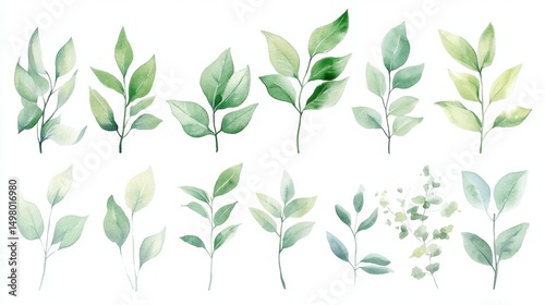 Collecting soft watercolor green leaves nature art collection vibrant environment close-up view tranquil concept
