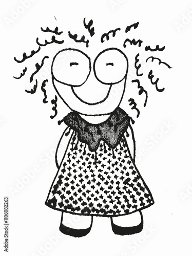 depiction, illustration, black-and-white, grin, joy, glasses, costume, design, art, dress, smile, woman, girl, foulard, style, look, happiness, illustration, drawing, vector