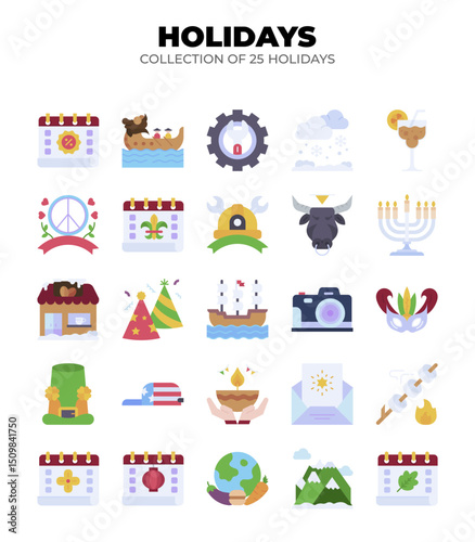 Collection of 25 Holidays. Festive Icons and Symbols