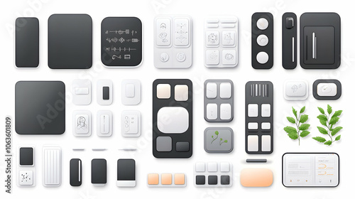 buttons, panel, switch, interface, design, app, mobile, digital, technology, element, set, collection, modern, minimalist, simple, clean, white, black, grey, green, leaf, vector, illustration, graphic, template, concept, futuristic, abstract, icon, symbol, contraption, device, software, application, web, cyberspace, screen, touch, responsive, user, life events, interaction, control, worked, navigation, option