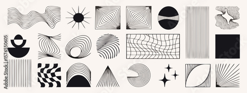 Collection of abstract geometric shapes and line art in black and white design elements created with generated ai