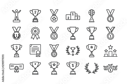 award, trophy, medal, certificate, dais, laurel wreath, achievement, recognition, competition, success, victory, winner, first place, ranking, accomplishment, design element, icon, vector, graphic, black-and-white, line art, illustration, awards ceremony, motivation, inspiration