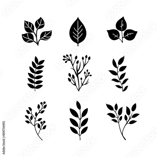 leaf, branch, silhouette, black, white, tree, plant, botanical, nature, foliage, autumn, fall, winter, vein, stem, twig, collection, set, illustration, design, element, pattern, decoration, ornament, floral, organic, simple, minimal, elegant, stark, graphic, contrast, clean, crisp