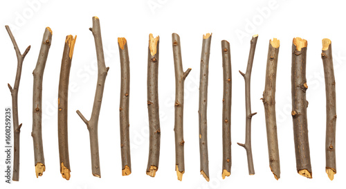 Collection of Broken Tree Branches Isolated on Black Background for Design