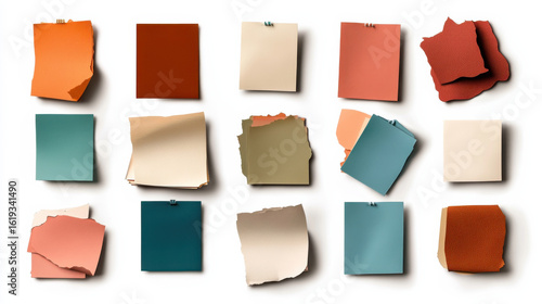 paper, sheet, torn, colourful, orange, teal, beige, texture, grid, pattern, artistic, vibrant, collection, arrangement, design, stationery, office, creative, background, decoration, variety, shades, colours, display, layout, composition, material, surface, abstract, collage, scrap, note, clip, pinned, pastel, contrast, visual, element, art, craft, aesthetic, inspiration, mood, palette, style