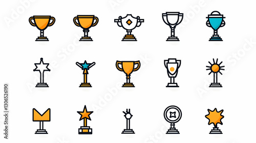 Collection of Colorful Trophy Icons for Achievement and Awards