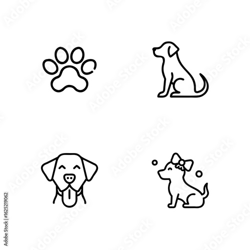 dog, puppy, canino, pet, animal, paw, print, icon, set, collection, graphic, design, illustration, simple, line art, outline, drawing, cute, adorable, friendly, playful, happy, domestic, mammal, furry, companion, friends, love, care, loyalty