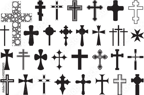 cross, jesus christ, crucifix, good friday, calvary, spiritual, celtic, holy, easter, sunday, resurrection, symbol, concept, lord, bible, week, element, object, christian, religious, church, catholic, faith, religion, collection, different, set, drawing, shape, spot, outline, white, black, vector, silhouette, illustration, isolated, spirituality, pray, collage, signs, worship, god, belief, icon, design, group, variety, dotted