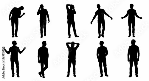 Collection of Diverse Male Silhouettes in Various Poses A Versatile Set of Black and White Human Figure Illustrations for Design Projects