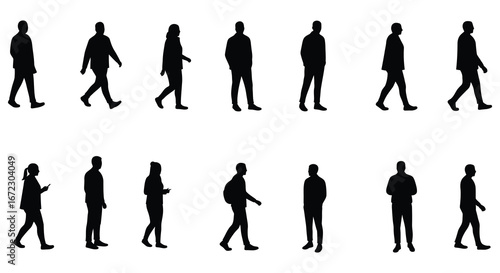 silhouette, people, walking, diverse, group, human, figure, icon, symbol, black, white, background, isolated, various, pose, direction, man, woman, adult, silhouette, clip, art, graphic, design, element, simple, style, flat, illustration, vector, graphic design, business, casual attire, person, community