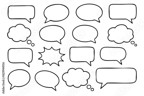 speech bubble, thought bubble, communication, dialogue, conversation, empty, blank, message, icon, set, vector, shape, design, element, graphic, outline, concept, idea, comment, quote, chat, talk, symbol, cloud, informational, template, collection