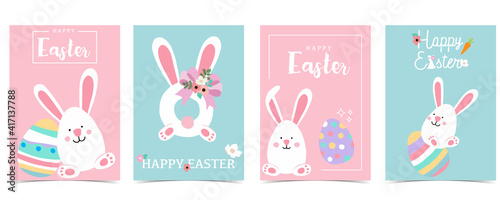 Collection of easter background set with rabbit,egg,flower.Editable vector illustration for website, invitation,postcard and poster