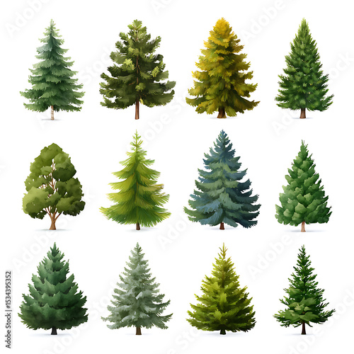 Collection of Evergreen Trees Fir, Pine, and Spruce Illustrations