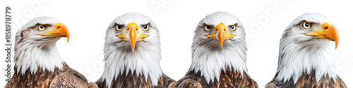 Collection of Four Stunning Bald Eagle Close Up Portraits Showcasing the Powerful Presence and Fierce Beauty of this Iconic American Raptor in its Natural Environment