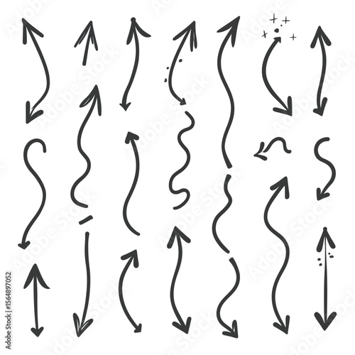 Collection of hand-drawn arrows pointing in various directions, styles, and curves.