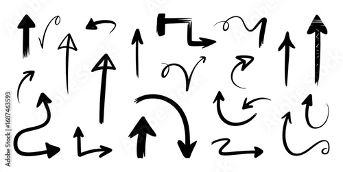 Collection of Hand-Drawn Black Arrows Pointing in Various Directions