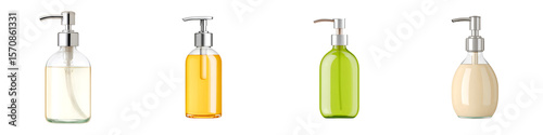Collection of Liquid Soap and Lotion Dispensers on White Background
