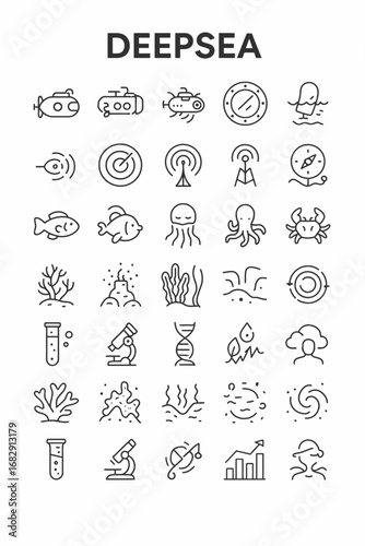 icon, ocean, science, marin, exploration, editable, deoxyribonucleic acid, compass, laboratory, graph, study, chart, biological, test, aim, molecular, discovery, graphic, helix, experiment, microscope, datum, underwater, navigation, laboratory, life, creature, volcano, biology, deep, signal, chemistry, vortex, wave, submarine, nautical, pictogram, tube, coral, expedition, vessel, octopus, current, technology, set, element, aquatic, collection, ecosystem