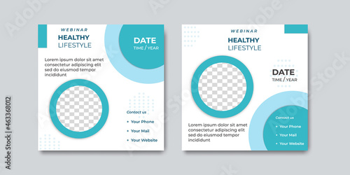 Collection of modern social media post templates with soft blue and green colors. Suitable for health webinars, health poster, business webinar, online classes and other online seminars.