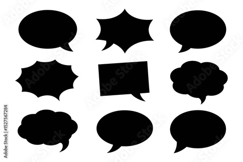 speech, bubble, black, shape, round, square, cloud, communication, dialogue, icon, symbol, message, talk, conversation, graphic, design, element, vector, illustration, cartoon, comic, thought, balloon, silhouette