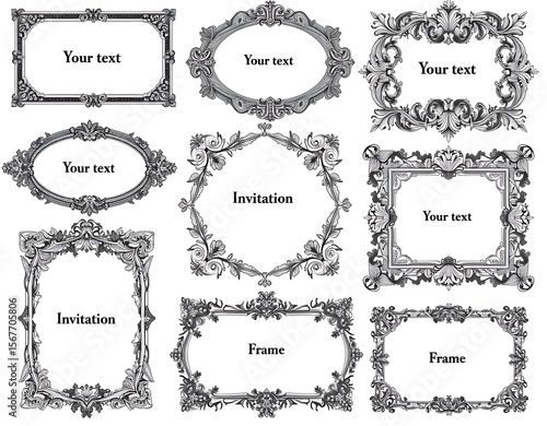 Collection of ornate black and white vintage decorative frames and borders vintage frame