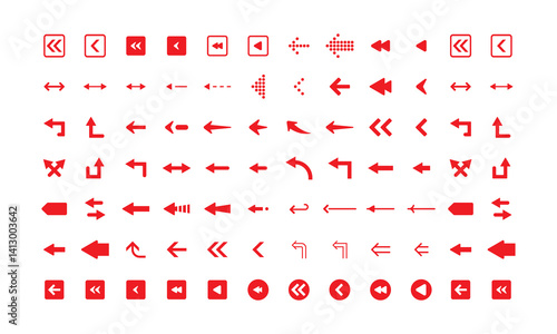 Collection of Red Arrow Symbols in Various Orientations and Styles
