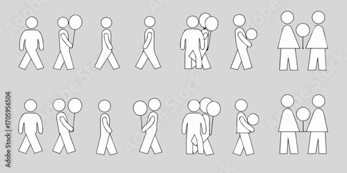 stick, figure, line, art, icon, symbol, walking, person, people, outline, simple, minimalist, graphic, illustration, white, black, isolated, background, grey, balloon, balloon, holding, group, couple, pair, movement, motion, activity, celebration, party, fun, joy, childhood, play, day, sunny, happy, together, friendship, community, design, element, collection, set, animation, sequence