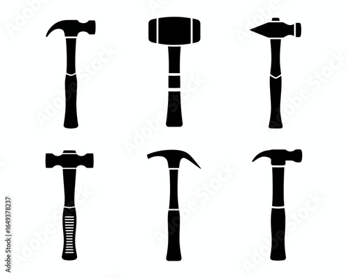 hammer, tool, construction, bricolage, building, carpenter's shop, black, white, isolated, background, silhouette, mallet, sledgehammer, hand tool, equipment, workshop, labor, craft, design, graphic, icon, vector, illustration, set, collection, group, variety, different, type, shape, simple, clean, minimalist, outline, drawing, art, object, instrument, work, project, hardware, metal, wood, handle, head