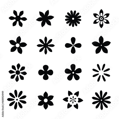 flower, floral, silhouette, black, white, flower petals, shape, design, decorative, graphic, icon, symbol, nature, simple, clean, modern, graphic design, illustration, isolated, pattern, botanical, bloom, blossom, flora, spring, summer, artistic, stylised, graphic elements, vector, graphic art