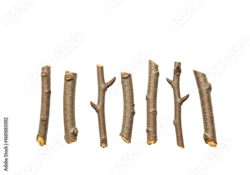 Collection of small brown twigs on transparent background natural texture nature photography
