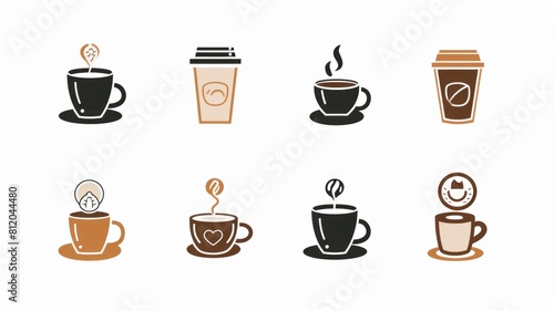 collection, stylish, coffee cup, icon, minimalist, design, variation, steam, modern, take-away, hot drink, coffee break, morning, brew, trendy, hot, beverage, aroma, refresh, culture, black coffee