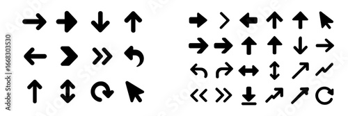 Collection of stylized directional arrows displayed in a vector format