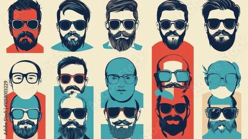 Collection of Stylized Male Portraits with Sunglasses and Facial Hair