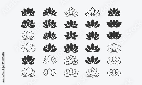 Collection of Various Black and White Lotus Flower Illustrations, Perfect for Logo, Tattoo, and Design Projects