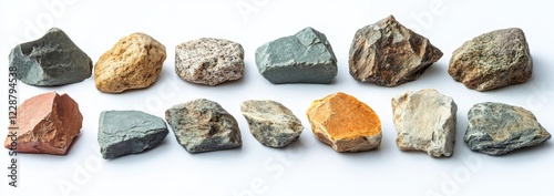 stone, rock, geology, mineral, collection, sample, earth, nature, texture, surface, colours, grey, brown, orange, red, white, background, isolated, rough, jagged, pebble, gravel, aggregate, element, material, detail, closeup, macro, specimen, science, education, design, art, decor, pattern, group, variety, different, assorted, multiple