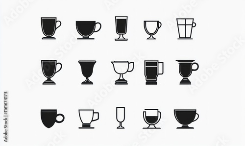cup, mug, glasses, pitcher, beverage, drink, hot drink, tea, water, juice, icon, set, collection, outline, simple, minimal, design, vector, graphic, illustration, symbol, silhouette, monochrome, black, white, isolated, background, element, shape, line, art, style, crockery, tableware, glassware, eatery, cafes, bar, kitchen, home, office