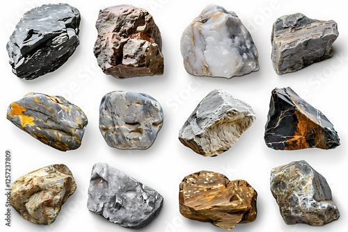 stone, rock, isolated, rough, collection, mineral, white, closeup, granite, pebble, texture, nature, set, grey, geology, object, background, natural, group, round, material, grey, design, cobbled, detail, brown, textured, small, shape, solid